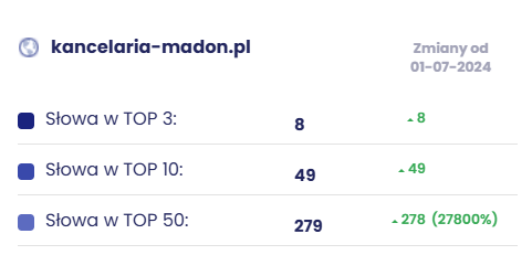 Największym wyzwaniem okazał się zastój trwający ponad 6 miesięcy. Mimo poprawnej optymalizacji i regularnych publikacji strona nie odnotowywała wzrostów nawet na frazy z tzw. „długiego ogona” (long-tail).