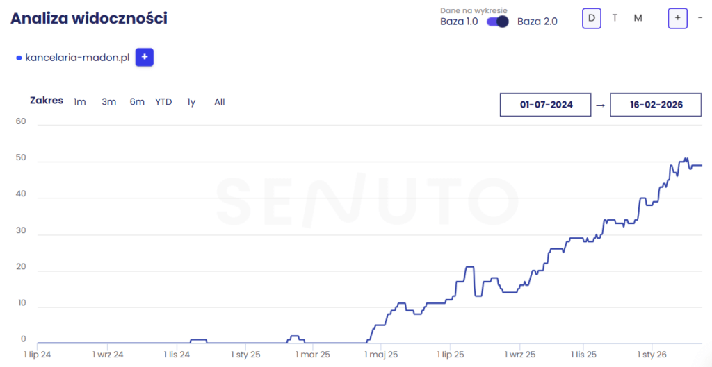 Zaledwie miesiąc po wzmocnieniu sygnałów lokalnych i brandowych, strona została „odblokowana” przez algorytm. Widoczność zaczęła gwałtownie rosnąć, co przełożyło się na realne zapytania ofertowe.
