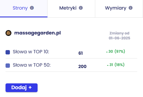 W ciągu niespełna pół roku udało nam się zwiększyć ilość fraz w TOP10 o 30, a w TOP50 o 31: